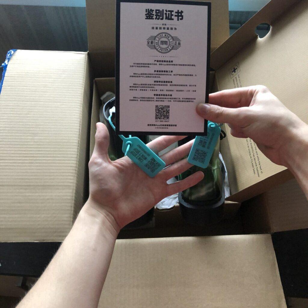 Как известно, у маркетплейса Poizon есть свой центр проверки вещей на аутентичность. Вместе с каждым товаром идут сертификат и пломбы, которые подтверждают проверку товара.