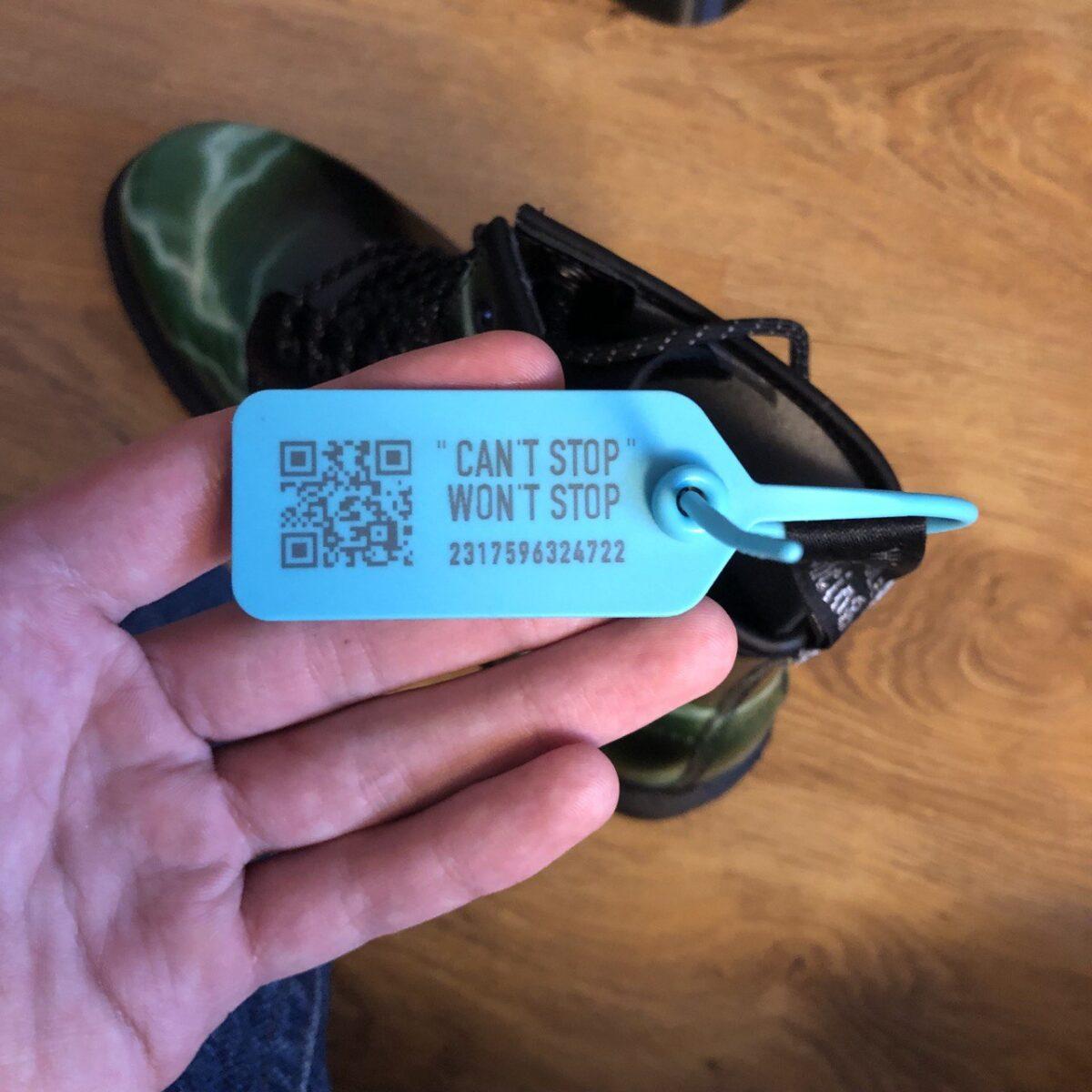 На странице, подтверждающей проверку, мы можем увидеть именно эти номера. Такое соответствие подтверждает факт проверки. То есть пломбы не просто так приделаны к ботинкам, а сертификат не просто положен в коробку: все они внесены в базу данных Poizon.