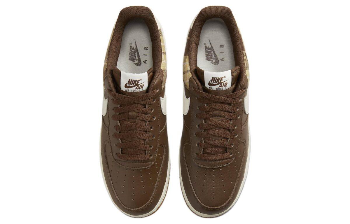 Купить оригинал кроссовки Nike Air Force 1 Low Cacao Wow, быстрая доставка из-за рубежа, оптимальная цена. Кроссовки только оригинальные, с проверкой номера от официального производителя. При заказе вы можете выбрать вариант доставки быстрой и обычной. Привозим с доставкой в любой город России. Nike является одним из лучших вариантов кроссовок.  Nike Air Force 1 Low Cacao Wow это практично и удобное решение для тех кто ценит качество. Nike Air Force 1 Low Cacao Wow обладает следующими особенностями: - Верх выполнен из комбинации шершавой кожи и сетки, что обеспечивает прочность и воздухопроницаемость. - Оформление включает тартановую ткань в оттенках коричневого, что придает обуви уникальный вид. - Подошва выполнена из резины цвета карамели, что добавляет стиля и улучшает сцепление с поверхностью. - Внутренняя стелька и подкладка выполнены в коричневом цвете, что создает единый стильный образ. - Язычок на обуви и задник украшены вышивкой с логотипом Nike Air в тон обуви. - Обувь предназначена для повседневного использования, сочетая в себе комфорт и стиль. - Тартановая ткань не только декоративный элемент, но и отсылка к холодному времени года, когда такие материалы традиционно используются для тепла.