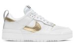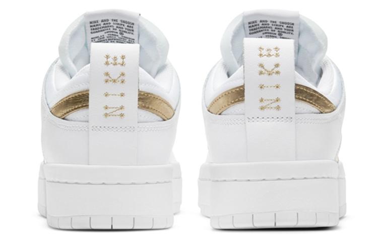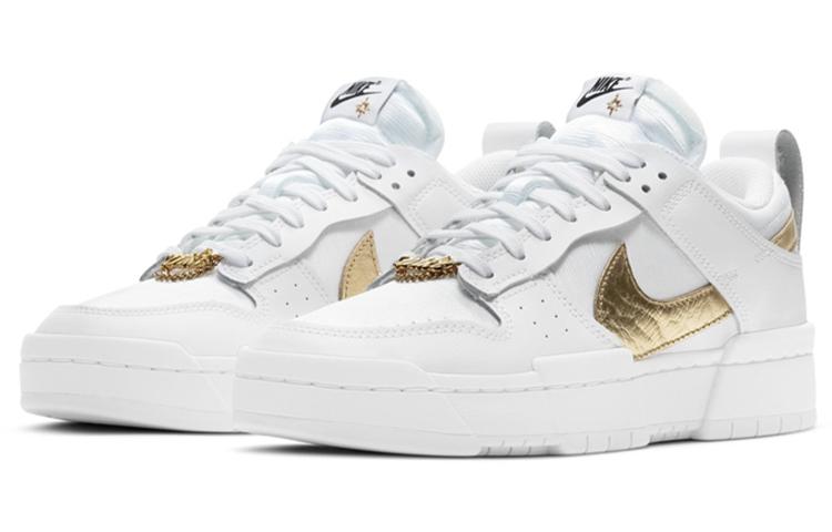 Купить оригинал кроссовки Nike Dunk Disrupt Low, быстрая доставка из-за рубежа, оптимальная цена. Кроссовки только оригинальные, с проверкой номера от официального производителя. При заказе вы можете выбрать вариант доставки быстрой и обычной. Привозим с доставкой в любой город России. Nike является одним из лучших вариантов кроссовок.  Nike Dunk Disrupt Low это практично и удобное решение для тех кто ценит качество. Nike Dunk Low Disrupt обладает следующими особенностями: - Верх выполнен из белой кожи с акцентами Metallic Gold на логотипе Swoosh. - Дизайн вдохновлён классическими баскетбольными кроссовками 1980-х годов. - Предназначены исключительно для женщин, что делает их уникальными на рынке. - Изделие включает в себя элементы, напоминающие о предшественниках, таких как подушечки и усиленные язычки для комфорта. - Подошва с резным узором добавляет современный вид и улучшает сцепление. - Кроссовки представляют собой сочетание спортивного стиля и уличной моды, подходя для повседневного использования. - Разработаны с учётом женских предпочтений в дизайне и комфорте.