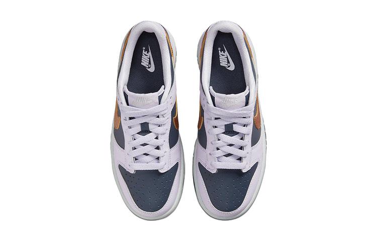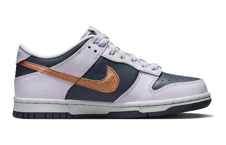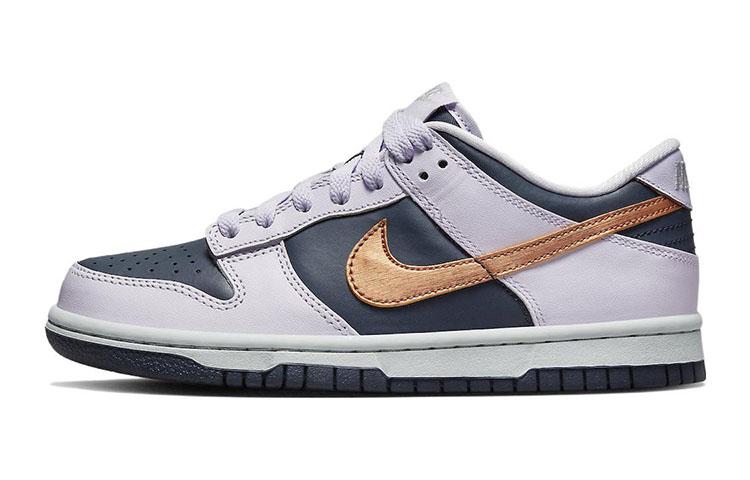 Купить оригинал кроссовки Nike Dunk Low Copper Swoosh GS, быстрая доставка из-за рубежа, оптимальная цена. Кроссовки только оригинальные, с проверкой номера от официального производителя. При заказе вы можете выбрать вариант доставки быстрой и обычной. Привозим с доставкой в любой город России. Nike является одним из лучших вариантов кроссовок.  Nike Dunk Low Copper Swoosh GS это практично и удобное решение для тех кто ценит качество. Nike Dunk Low SE Copper Swoosh GS обладает следующими особенностями: - Верх выполнен из глубокого синего кожаного материала с акцентами из металлической меди. - Дизайн включает очень светлые оттенки фиолетового, которые контрастируют с основным цветом. - Подошва напоминает стиль Air Jordan 1 Low с белой промежуточной подошвой и глубоко синей подметкой. - Кроссовки предназначены для детей и женщин, что делает их более доступными для широкой аудитории. - Материалы верха включают комбинацию кожи, нейлона и замши, что добавляет изделию изысканности и долговечности. - Уникальные характеристики и стиль делают эту модель выделяющейся на фоне других.