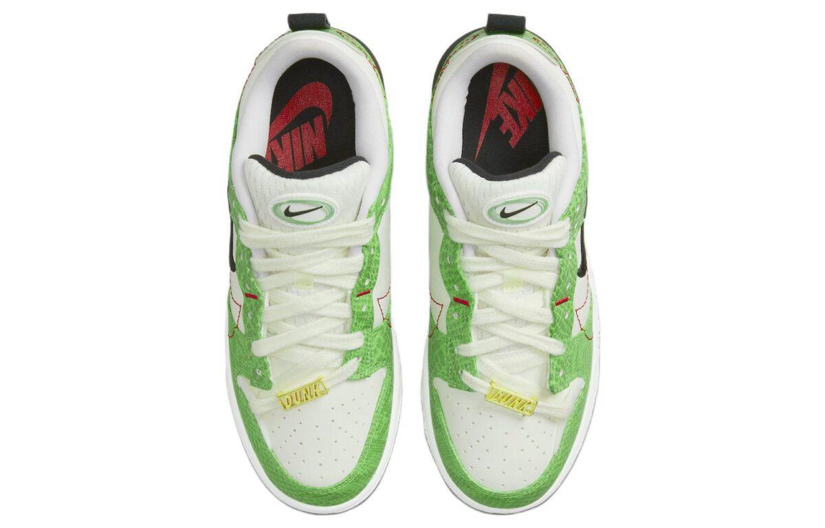 Купить оригинал кроссовки Nike Dunk Low disrupt 2 just do it, быстрая доставка из-за рубежа, оптимальная цена. Кроссовки только оригинальные, с проверкой номера от официального производителя. При заказе вы можете выбрать вариант доставки быстрой и обычной. Привозим с доставкой в любой город России. Nike является одним из лучших вариантов кроссовок.  Nike Dunk Low disrupt 2 just do it это практично и удобное решение для тех кто ценит качество. Nike Dunk Low Disrupt 2 Just Do It обладает следующими особенностями: - Яркий дизайн с использованием флуоресцентно-зеленой змеиной кожи. - Задник украшен коричневым панельным элементом. - Красные акценты подчеркивают вторичный миниатюрный черный Swoosh. - Золотые элементы DUNK на шнурках добавляют стиль. - Подошва цвета Sail с надписью Just Do It. - Верх из белой кожи создает контраст с яркими деталями. - Язычок выполнен из дышащей сетки. - Обувь предназначена для повседневного использования с акцентом на стиль. - Конструкция обеспечивает комфорт и поддержку.