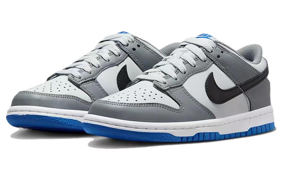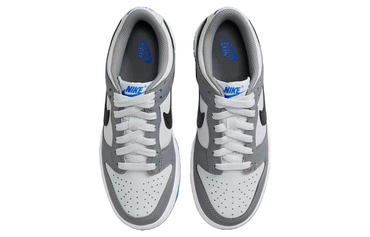 Купить оригинал кроссовки Nike Dunk Low GS, быстрая доставка из-за рубежа, оптимальная цена. Кроссовки только оригинальные, с проверкой номера от официального производителя. При заказе вы можете выбрать вариант доставки быстрой и обычной. Привозим с доставкой в любой город России. Nike является одним из лучших вариантов кроссовок.  Nike Dunk Low GS это практично и удобное решение для тех кто ценит качество. Nike Dunk Low GS обладает следующими особенностями: - Разработаны специально для детей, подчеркивая приверженность Nike к молодой аудитории. - Используются настоящая и синтетическая кожа для долговечности и классического вида. - Анкерная подкладка и прочная резиновая подошва обеспечивают комфорт и устойчивость. - Дизайн включает в себя иконические перфорации на носке обуви, характерные для оригинальных Dunk. - Цветовая схема сочетает серый, черный, платиновый и светло-голубой оттенки. - Черные логотипы Swoosh контрастируют с серо-белым фоном, а светло-голубые акценты выделяются на язычке и заднике. - Полноценная резиновая подошва с узором, аналогичным оригинальным Dunk, для надежного сцепления. - Конструкция Cupsole и классические шнурки для поддержания традиционного вида и ощущений. - Яркие акценты светло-голубого цвета на язычке и пятке делают дизайн более выразительным.