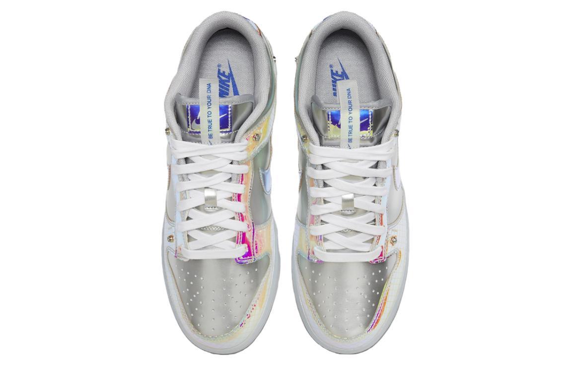 Купить оригинал кроссовки Nike Dunk Low Hyperflat, быстрая доставка из-за рубежа, оптимальная цена. Кроссовки только оригинальные, с проверкой номера от официального производителя. При заказе вы можете выбрать вариант доставки быстрой и обычной. Привозим с доставкой в любой город России. Nike является одним из лучших вариантов кроссовок.  Nike Dunk Low Hyperflat это практично и удобное решение для тех кто ценит качество. Nike Dunk Low Hyperflat обладает следующими особенностями: - Используется металлический серебристый цвет с иридесцентными наложениями из лакированной кожи. - На язычках кроссовок есть надпись Be True to Your DNA. - Подошва выполнена прозрачным материалом. - Дизайн включает в себя сетчатый узор под иридесцентными наложениями. - На пятке кроссовок находится футуристическая надпись NIKE. - Кроссовки предназначены для празднования культурных и инновационных аспектов бренда Nike. - Особенностью модели является её эксклюзивность для рынка Большого Китая. - Кроссовки отражают дух инноваций и модернизации классического стиля.