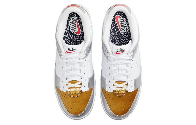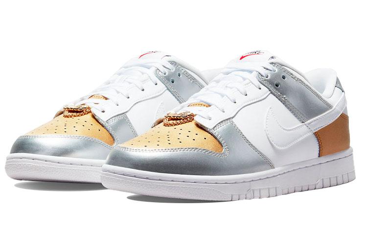 Купить оригинал кроссовки Nike Dunk Low Metallic, быстрая доставка из-за рубежа, оптимальная цена. Кроссовки только оригинальные, с проверкой номера от официального производителя. При заказе вы можете выбрать вариант доставки быстрой и обычной. Привозим с доставкой в любой город России. Nike является одним из лучших вариантов кроссовок.  Nike Dunk Low Metallic это практично и удобное решение для тех кто ценит качество. Nike Dunk Low Metallic обладает следующими особенностями: - Комбинирует акценты металлического серебра и золота. - Разработаны специально для женщин. - Включает элементы дизайна, вдохновленные спортивной обувью Nike последних лет. - Предлагает защиту покупателя при покупке через интернет-магазин GOAT. - Является частью кураторских коллекций на платформе GOAT, что подчеркивает их популярность и стиль.