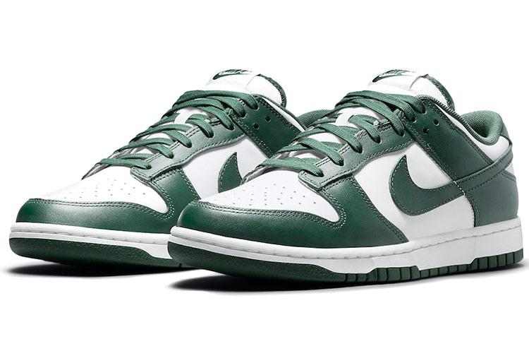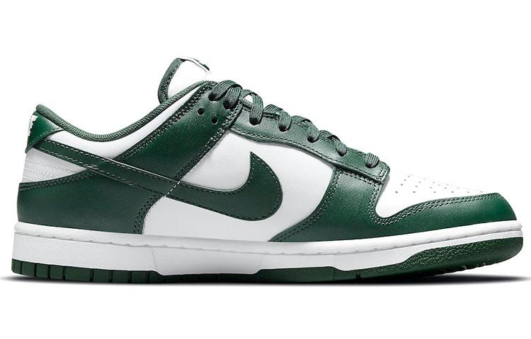 Купить оригинал кроссовки Nike Dunk Low Retro Varsity Green, быстрая доставка из-за рубежа, оптимальная цена. Кроссовки только оригинальные, с проверкой номера от официального производителя. При заказе вы можете выбрать вариант доставки быстрой и обычной. Привозим с доставкой в любой город России. Nike является одним из лучших вариантов кроссовок.  Nike Dunk Low Retro Varsity Green это практично и удобное решение для тех кто ценит качество. Nike Dunk Low Varsity Green обладает следующими особенностями: - Верх выполнен из белой кожи с зелёными наложениями. - Дизайн вдохновлён колледжем Мичиганского государственного университета. - Включает воздушную подушку Air-Sole для комфорта. - Подошва из резины обеспечивает долговечность и устойчивость. - Логотипы Nike Swoosh выполнены в зелёном цвете. - Язычок украшен тканевыми ярлыками с ретро-логотипом Nike. - Вышивка на пятке напоминает о первых моделях Dunk 1985 года. - Предназначены для культурных мероприятий и скейтбординга. - Перфорированный носок обеспечивает дополнительную вентиляцию. - Нейлоновый язычок улучшает дышащие свойства обуви. - Изначально созданы для баскетбольных площадок, но стали популярны на улицах.