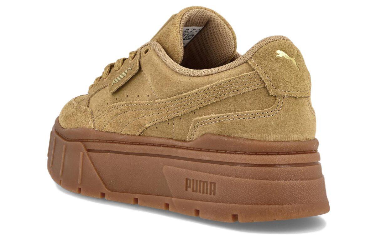 Купить оригинал кроссовки PUMA Mayze Stack Suede, быстрая доставка из-за рубежа, оптимальная цена. Кроссовки только оригинальные, с проверкой номера от официального производителя. При заказе вы можете выбрать вариант доставки быстрой и обычной. Привозим с доставкой в любой город России. Puma является одним из лучших вариантов кроссовок.  PUMA Mayze Stack Suede это практично и удобное решение для тех кто ценит качество. Кроссовки PUMA Mayze Stack Suede отличаются следующими характеристиками: - Созданы для любителей уличной моды, энтузиастов улиц и тех, кто следит за трендами. - Обладают высокой подошвой, что придает им дополнительную выразительность и уникальность. - Верх кроссовок выполнен полностью из замши, что обеспечивает надежность и долговечность. - Резиновая подошва гарантирует комфорт при ношении и хорошее сцепление с поверхностью. - Дизайн вдохновлен классическими моделями PUMA, что придает кроссовкам особый стиль. - Включают элементы брендинга PUMA, которые делают дизайн узнаваемым. - Предназначены для женщин, подчеркивая их стиль и индивидуальность. - Предлагаются в различных цветовых решениях, включая стильный коричнево-золотой.