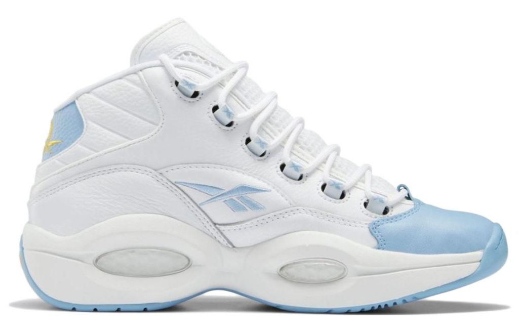 Купить оригинал кроссовки Reebok Question Mid Denver Nuggets, быстрая доставка из-за рубежа, оптимальная цена. Кроссовки только оригинальные, с проверкой номера от официального производителя. При заказе вы можете выбрать вариант доставки быстрой и обычной. Привозим с доставкой в любой город России. Reebok является одним из лучших вариантов кроссовок.  Reebok Question Mid Denver Nuggets это практично и удобное решение для тех кто ценит качество. Reebok Question Mid Denver Nuggets обладает следующими особенностями: - Отдает дань уважения времени Аллена Айверсона в команде Denver Nuggets. - Верх выполнен из белой кожи с элементами светло-голубого цвета на пятке и боковой вышивкой. - Дизайн включает золотистые акценты, соответствующие цветам команды Denver Nuggets того времени. - На стельке изображен Аллен Айверсон, что добавляет уникальности данной модели. - Предназначены для активного образа жизни, сочетая в себе стиль и комфорт. - Используются премиальные материалы для долговечности и поддержки. - Подошва обеспечивает хорошее сцепление, что важно для баскетбольной обуви. - Подходят как для спортивных мероприятий, так и для повседневного использования благодаря своему стильному внешнему виду и комфорту.